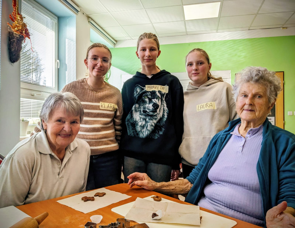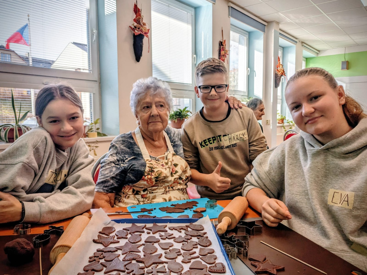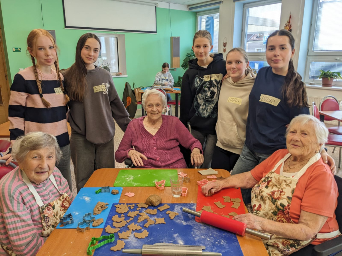 V pátek 21. listopadu 2025 se naši studenti zapojili do krásné mezigenerační aktivity – pekli perníčky v domově pro seniory v Bezděkově a trávili čas s jeho obyvateli. Některé seniory navštívili na pokojích. Připojili se tak k již tradiční společné akci žákovských parlamentů základních škol v České Třebové, aby společně podpořili vztahy mezi generacemi. Perníčky budeme prodávat při rozsvěcení vánočního stromu na Starém náměstí v neděli 30. listopadu. Veškerý výtěžek poputuje zpět na podporu domova pro seniory. Přijďte nás podpořit tento víkend svým nákupem a pomozte nám udělat seniorům radost!