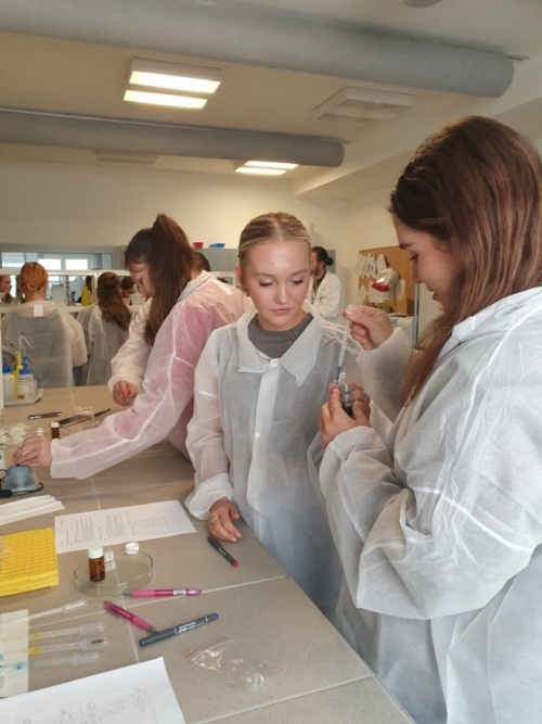 Vybraných 26 studentů a 2 pedagogové našeho gymnázia se v pátek 19. září, opět po roce, zúčastnili akce Týden vědy v Contipru v Dolní Dobrouči. Letošní téma bylo „V kůži výzkumníka“. Byl pro nás připraven velmi zajímavý program obsahující přednášku na téma „Kůže: hrdina našeho těla“ a tři workshopy, při kterých jsme si ve výzkumných laboratořích této firmy vyzkoušeli například vyrobit vlastní nanovlákennou masku s obsahem kyseliny hyaluronové nebo sestavit mini automatizační linku a naprogramovat roboty a kameru.