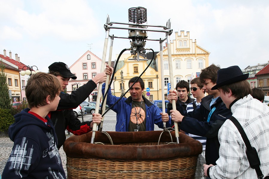 Kvartáni pomáhají sestavit ko balónu